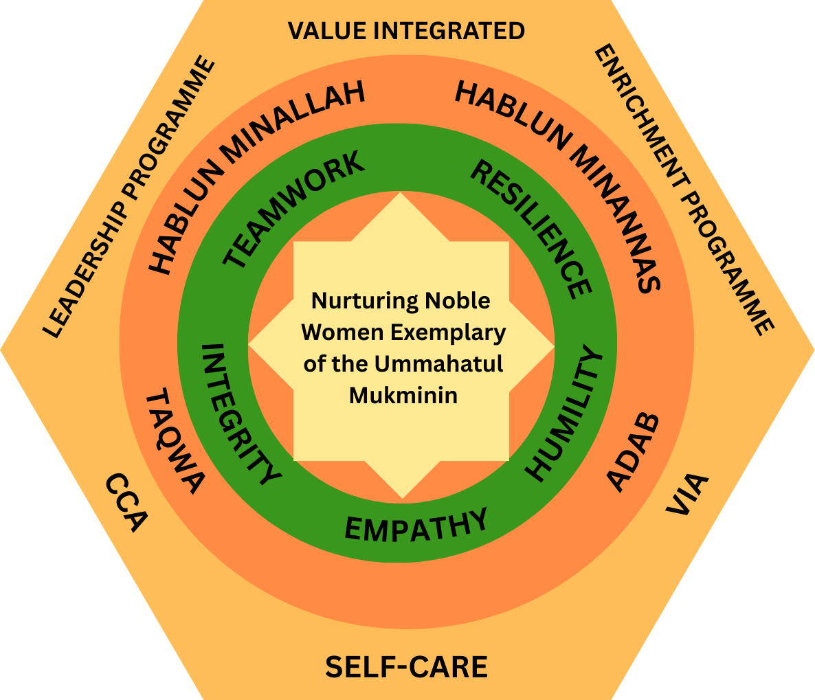 | Values Integrated | Self-Care | Leadership Programme | CCA/PE | VIA | Enrichment Programme |